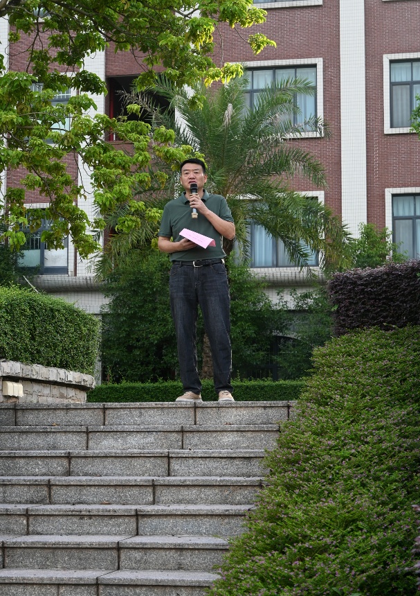 升旗儀式后,教育學(xué)院院長(zhǎng)馬岳良發(fā)表了題為“喜迎國(guó)慶,愛(ài)我中華”的國(guó)旗下講話。院長(zhǎng)深情回顧,從“兩彈一星”的驚天動(dòng)地,到“神舟飛天”的逐夢(mèng)蒼穹;從脫貧攻堅(jiān)戰(zhàn)場(chǎng)的捷報(bào)頻傳,到抗擊疫情時(shí)的眾志成城;從高鐵疾馳展現(xiàn)的“中國(guó)速度”,到數(shù)字支付彰顯的“中國(guó)創(chuàng)新”等一系列輝煌成就,無(wú)不彰顯著祖國(guó)的蓬勃發(fā)展與強(qiáng)大力量。他鼓勵(lì)同學(xué)們珍惜時(shí)光,勤學(xué)苦練,勇于創(chuàng)新,敢為人先,以青春之我,擔(dān)起青春之責(zé),為青春之國(guó)家、青春之民族拼搏奮進(jìn)。