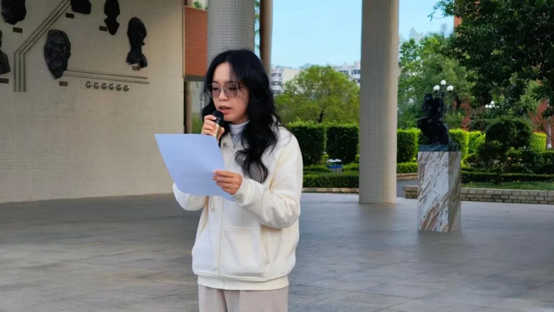 藝術(shù)與傳媒學(xué)院學(xué)管主任劉嘉怡在儀式上發(fā)表講話,強(qiáng)調(diào)全體學(xué)子要以專業(yè)實(shí)踐踐行主題精神,立足專業(yè)領(lǐng)域?qū)W⑸罡饤壐≡晷膽B(tài)、篤行實(shí)干。她鼓勵(lì)大家將奮進(jìn)信念融入藝術(shù)創(chuàng)作與育人實(shí)踐,以扎實(shí)專業(yè)能力在各自賽道逐夢(mèng)前行,切實(shí)彰顯青年一代的責(zé)任與擔(dān)當(dāng)。此次儀式進(jìn)一步凝聚了兩院師生共識(shí),引導(dǎo)大家以實(shí)干踐行使命,用奮斗書寫青春華章,充分展現(xiàn)藝傳風(fēng)采與教育擔(dān)當(dāng)。