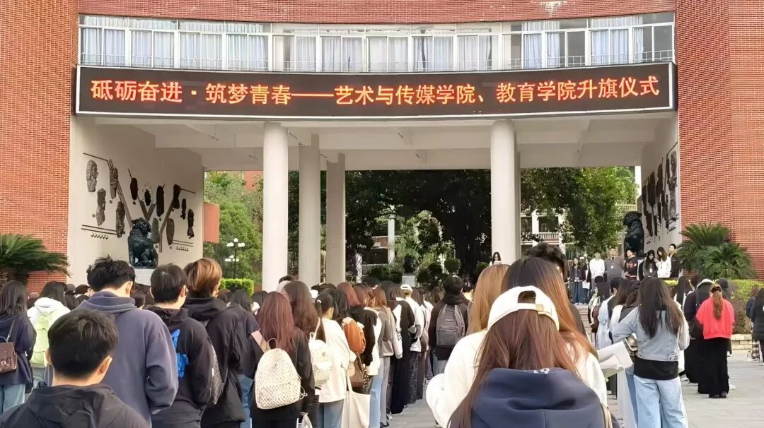 11月24日清晨,藝術(shù)與傳媒學(xué)院與教育學(xué)院聯(lián)合舉行 “砥礪奮進(jìn)?筑夢(mèng)青春” 主題升旗儀式,兩院師生整齊列隊(duì),共同參加此次莊嚴(yán)儀式。清晨,國旗護(hù)衛(wèi)隊(duì)邁著鏗鏘有力的步伐入場(chǎng),在全體師生的注目下,五星紅旗伴隨著雄壯的國歌冉冉升起、迎風(fēng)飄揚(yáng)。這抹鮮紅不僅是信仰的底色,更成為兩院學(xué)子 “筑夢(mèng)青春” 的創(chuàng)作注腳與奮進(jìn)序章,為青年學(xué)子的成長之路注入昂揚(yáng)的精神力量。