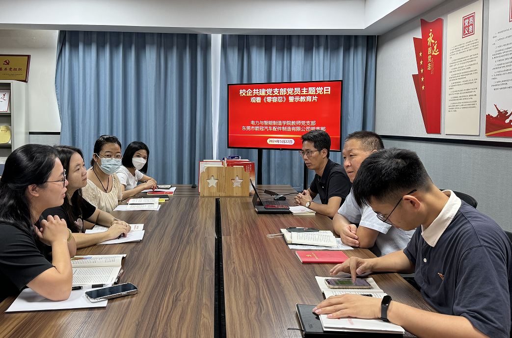 東莞市箭冠汽車配件制造有限公司黨支部,是我院教師黨支部共建結(jié)對(duì)單位之一,5月22日東莞市箭冠汽車配件制造有限公司黨支部委員李謙儀銷售經(jīng)理帶隊(duì)來校進(jìn)行招聘宣講,應(yīng)邀請參加了學(xué)院教師黨支部開展的黨員主題黨日活動(dòng),共同觀看《零容忍》專題片第一集——《不負(fù)十四億》。教師黨支部全體黨員與企業(yè)黨支部黨員代表參加會(huì)議,會(huì)議由孫令真書記主持。
