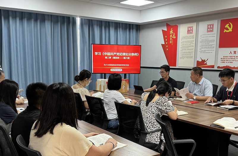 電力與智能制造學院黨總支書記褚玉峰參加了教師黨支部的黨紀學習教育,他帶領(lǐng)全體黨員學習《中國共產(chǎn)黨紀律處分條例》中第四章至第六章的內(nèi)容。