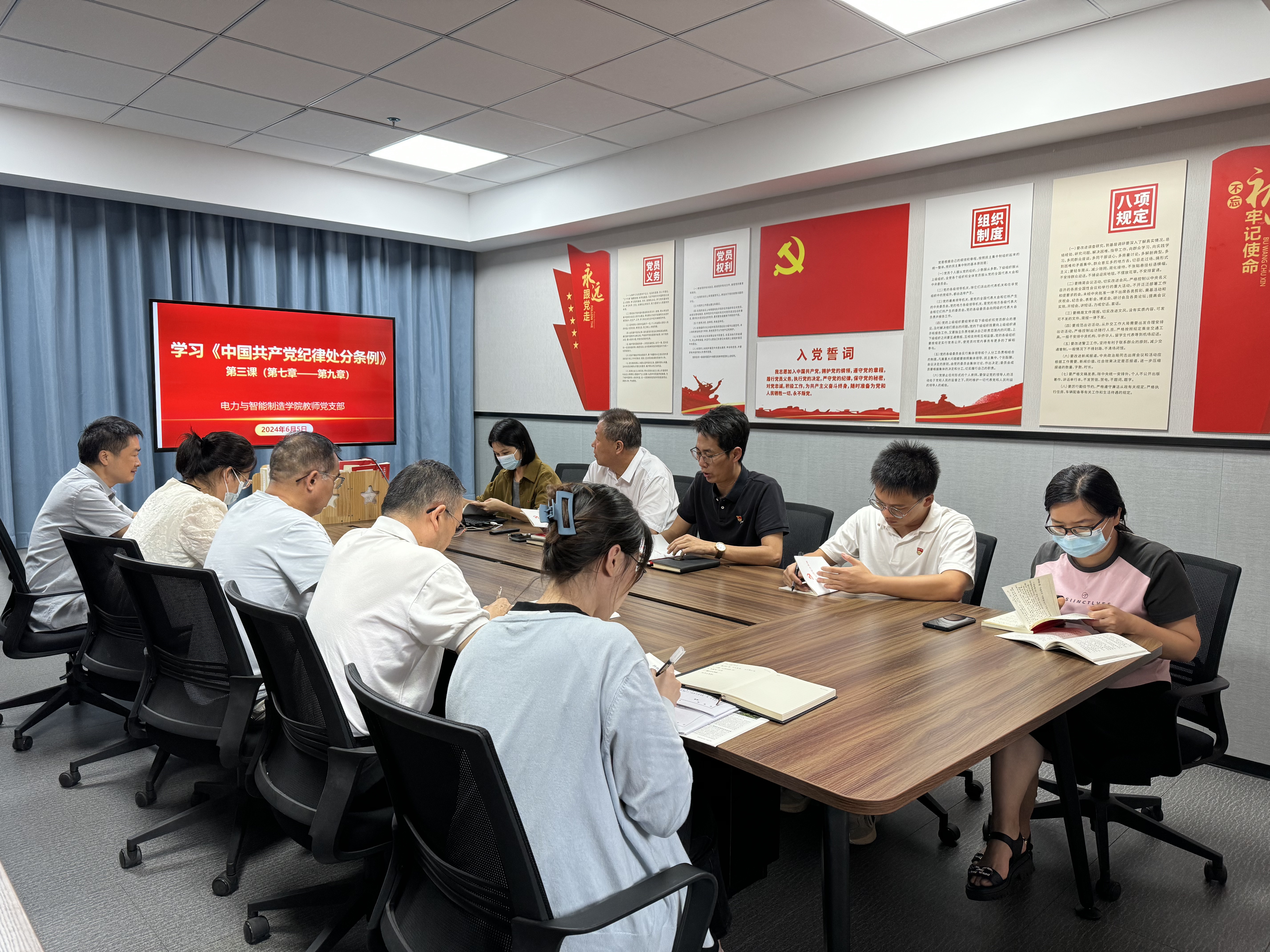 本節(jié)課,由電力與智能制造學院教師黨支部書記孫令真同志領學《中國共產黨紀律處分條例》中第七章至第九章的內容。