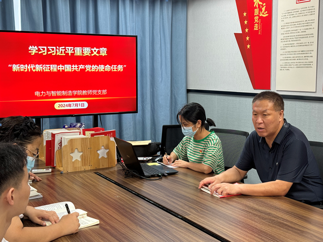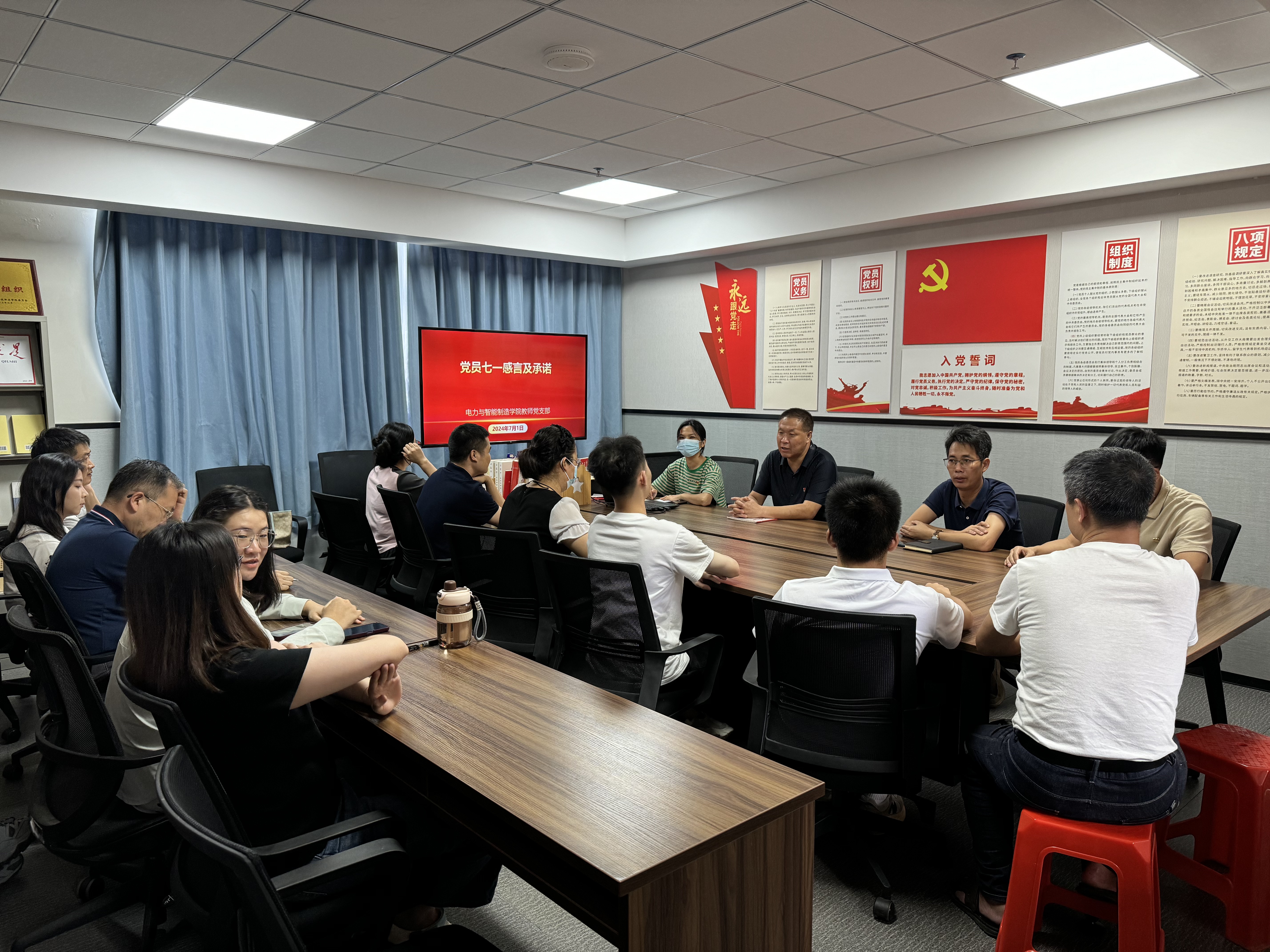 2024年7月1日,是中國共產(chǎn)黨建黨103周年,在這個舉國歡慶的日子,電力與智能制造學(xué)院黨總支在西1-514B會議室開展了黨員“七一”感言和承諾主題黨日活動。學(xué)院全體黨員參加了活動,會議由學(xué)院黨總支書記褚玉峰主持。