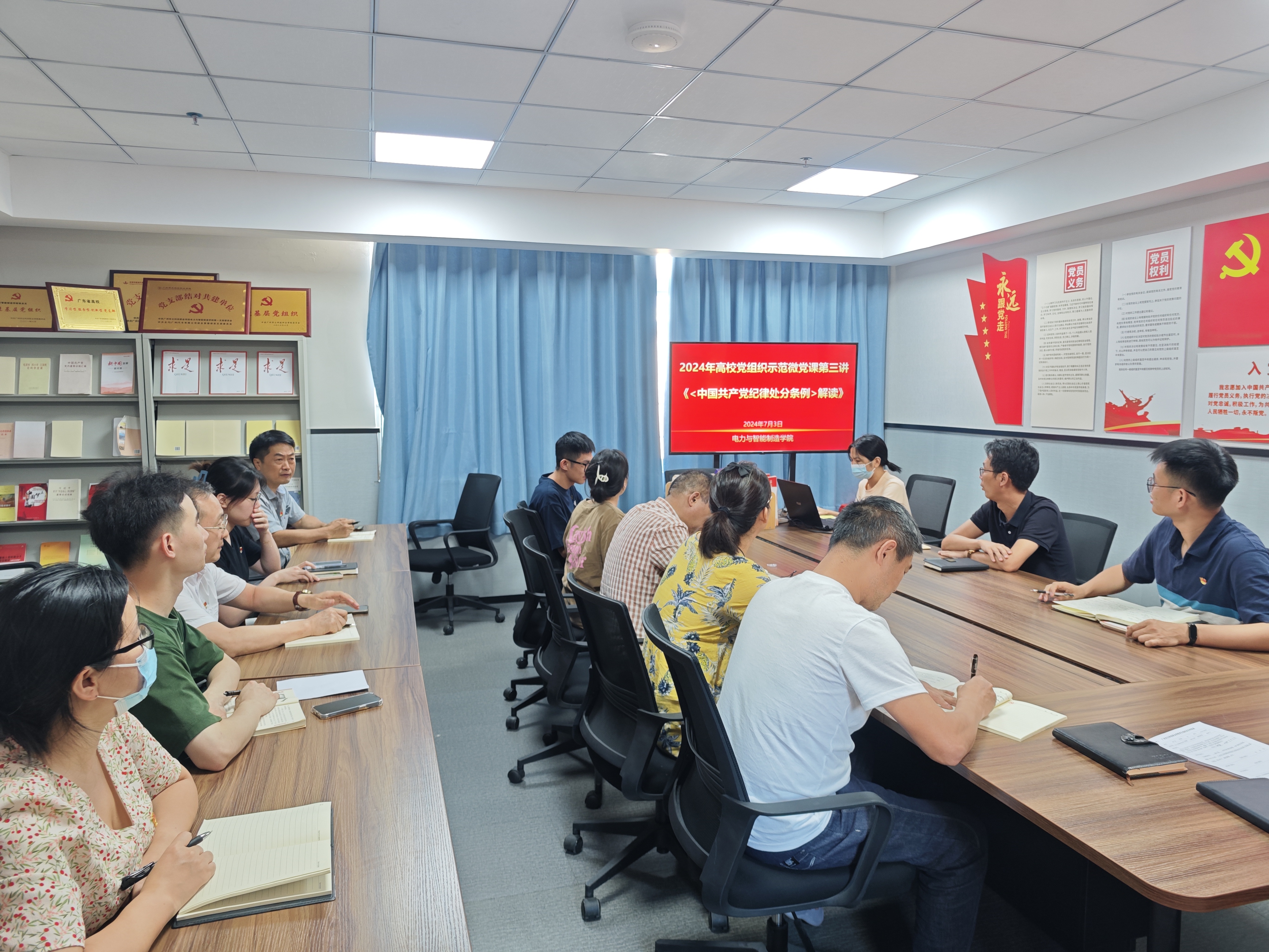 7月3日下午,電力與智能制造學院黨總支教師黨支部在西1-514會議室組織黨員學習觀看2024年高校黨組織示范微黨課第三講《<中國共產黨紀律處分條例>解讀》。教師黨支部全體黨員參加了會議,會議由教師黨支部孫令真書記主持。
