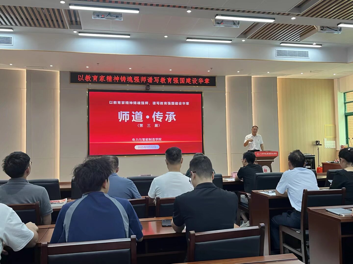 為了大力弘揚教育家精神,譜寫教育強國建設華章,9月12日下午在圖書館104會議室,電力與智能制造學院開展了第三屆“師道?傳承”活動,活動由學院黨總支書記褚玉峰教授主持。