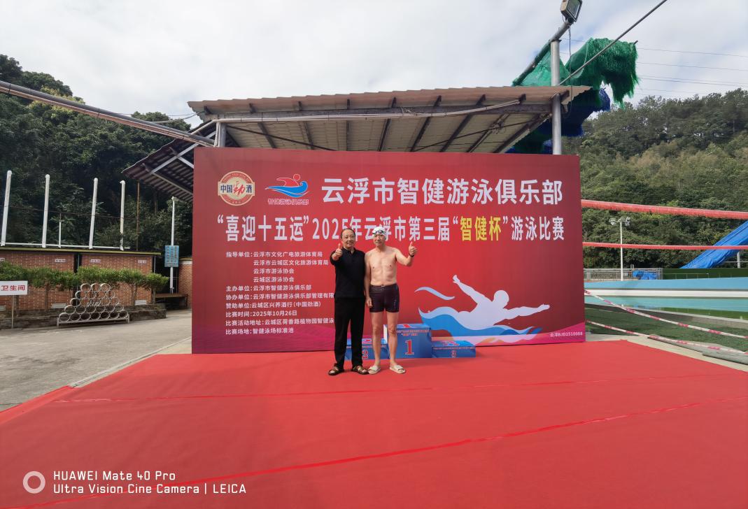 為迎接即將到來的全國十五運會,營造全民健身、喜迎“十五運會”的濃厚氛圍,2025年云浮市第三屆“智健杯”游泳比賽于10月26日圓滿落幕。我校電力與智能制造學(xué)院李其龍老師在比賽中發(fā)揮出色,在男子56至65歲組50米自由泳決賽中,憑借優(yōu)異表現(xiàn)榮獲全市第五名。