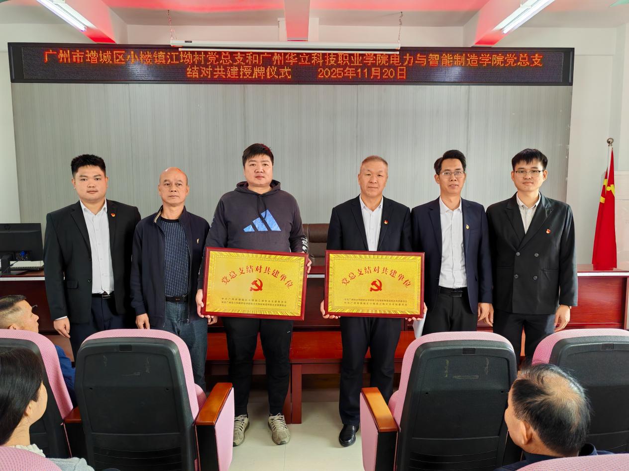 為推動高校智力資源與鄉(xiāng)村發(fā)展需求精準對接,探索黨建賦能鄉(xiāng)村振興新路徑。11月20日,電力與智能制造學(xué)院與廣州市增城區(qū)小樓鎮(zhèn)江坳村,在江坳村村委會舉行黨總支共建授牌儀式,開啟校村結(jié)對共建新篇章。