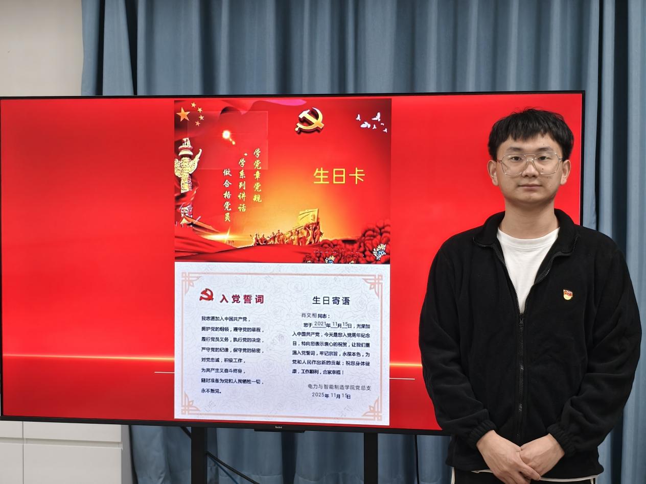 作為電力與智能制造學(xué)院的一名教師黨員肖文相,11月15日在收到學(xué)院黨組織發(fā)來的“政治生日”賀卡,我的心情格外激動,感謝組織的關(guān)懷。時間飛逝,轉(zhuǎn)眼間加入中國共產(chǎn)黨已經(jīng)4年。