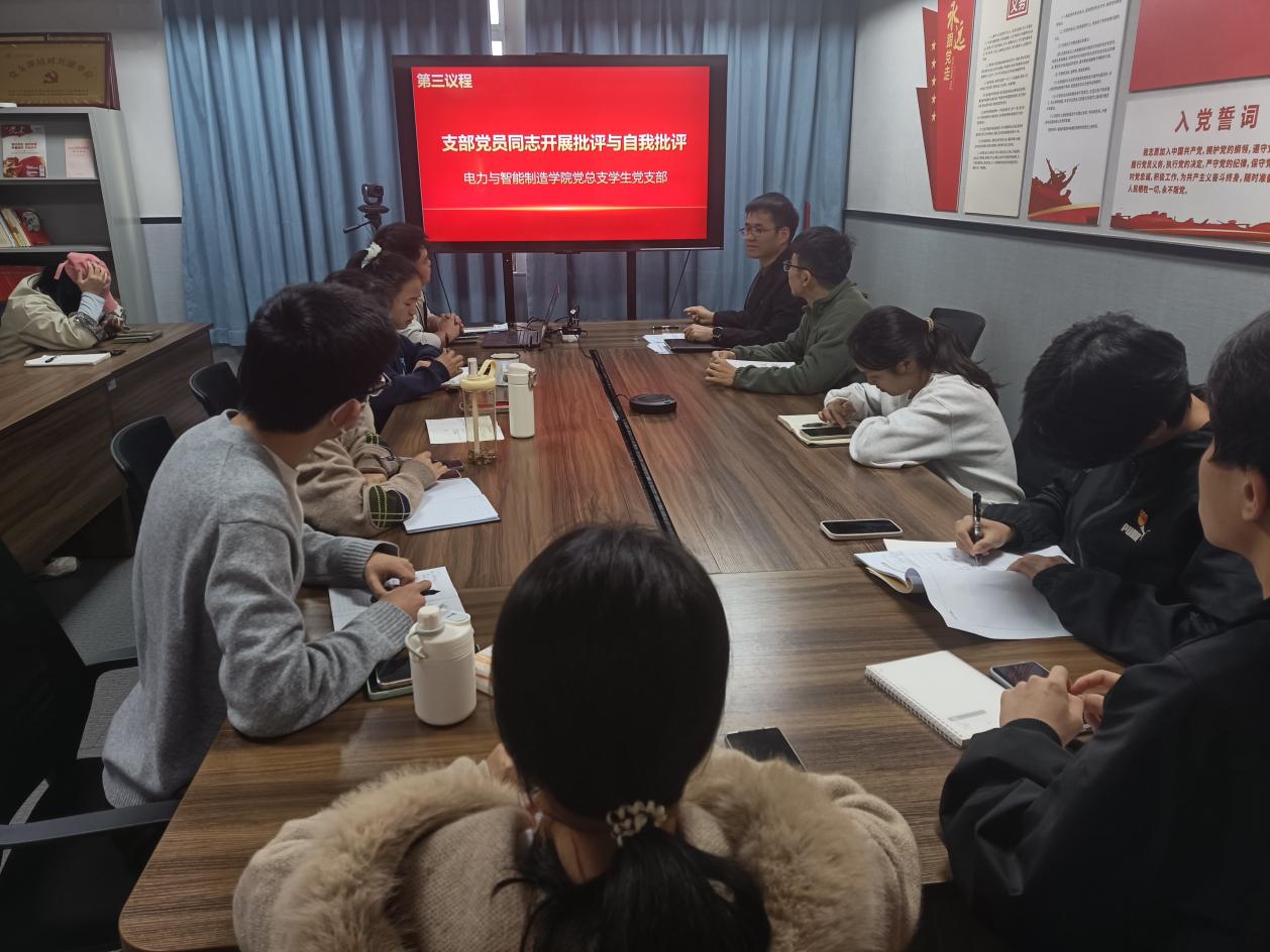 1月26日,電力與智能制造學(xué)院學(xué)生黨支部于西一514會議室召開2025年度組織生活會暨民主評議黨員會議,會議由學(xué)生黨支部書記鄭理廣主持,支部全體黨員參加了會議。