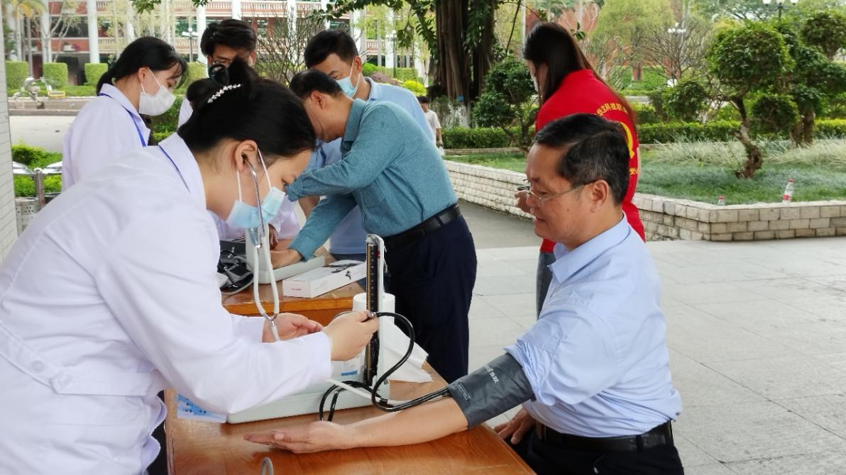 雷毅雄院長帶領(lǐng)同學(xué)們?yōu)閹熒鷾y量血壓,并根據(jù)每個人的具體情況給予針對性的健康建議,解答師生們的疑問并及時普及高血壓的危害、預(yù)防措施以及日常生活中如何控制血壓等知識。