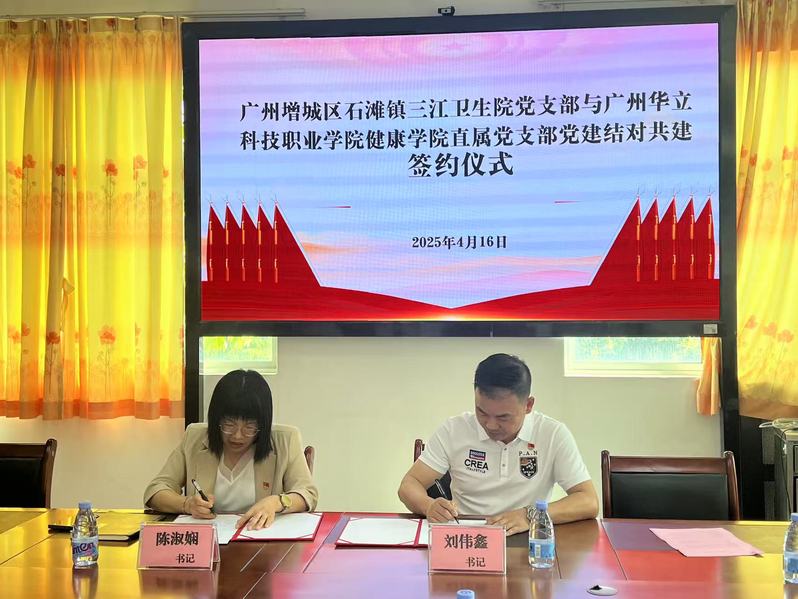 2025年4月16日下午,我院直屬黨支部與廣州增城區(qū)石灘鎮(zhèn)三江衛(wèi)生院黨支部舉行黨建結(jié)對(duì)共建簽約儀式。健康學(xué)院直屬黨支部書記劉偉鑫、組織委員冼嘉祺、宣傳委員楊李梨、行政人事主任張勇維、黨員教師代表?xiàng)铢i,廣州增城區(qū)石灘鎮(zhèn)三江衛(wèi)生院黨支部書記陳淑嫻、院長羅偉良及黨員代表參加了簽約儀式。