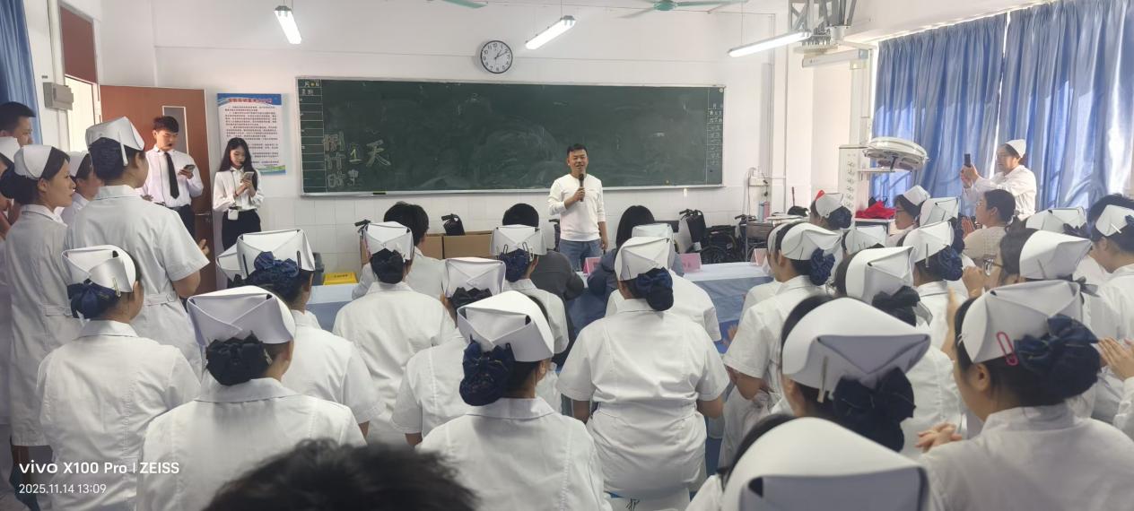 比賽當(dāng)日,現(xiàn)場氣氛緊張而熱烈,寬敞明亮的實(shí)訓(xùn)室內(nèi),擺放著整齊的護(hù)理操作臺,每張操作臺上都配備了完備的靜脈輸液所需物品。參賽同學(xué)們身著整潔的護(hù)士服,頭戴護(hù)士帽,整齊列隊,眼神中透露出期待與興奮。健康學(xué)院劉偉鑫副院長發(fā)表了講話:他首先對本次比賽的順利舉辦表示熱烈祝賀,并鼓勵同學(xué)們道:“同學(xué)們,護(hù)理工作是一項承載著生命與希望的神圣事業(yè),它不僅需要扎實(shí)的專業(yè)技能,更要有高度的責(zé)任感和無私的奉獻(xiàn)精神。今天的靜脈輸液技能比賽,是你們展示自我、提升能力的重要平臺。希望同學(xué)們能夠珍惜這次機(jī)會,賽出風(fēng)格,賽出水平。無論比賽結(jié)果如何,都要把這次經(jīng)歷當(dāng)作成長道路上的寶貴財富,不斷努力學(xué)習(xí)和實(shí)踐,在未來的護(hù)理生涯中,用愛心、耐心和精湛技藝,成為患者信賴的守護(hù)者?!?/span>
