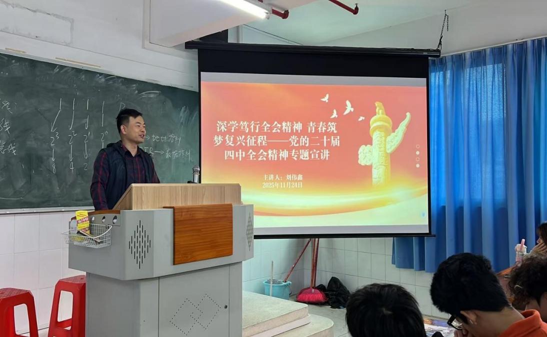 2025年11月24日上午,廣州華立科技職業(yè)學(xué)院健康學(xué)院在西三教學(xué)樓604教室舉辦“深學(xué)篤行全會(huì)精神,青春筑夢(mèng)復(fù)興征程”專題宣講會(huì),旨在深入學(xué)習(xí)貫徹黨的二十屆四中全會(huì)精神,引導(dǎo)青年學(xué)生深悟核心要義,增強(qiáng)使命擔(dān)當(dāng),此次宣講由健康學(xué)院直屬黨支部書記劉偉鑫同志主講。