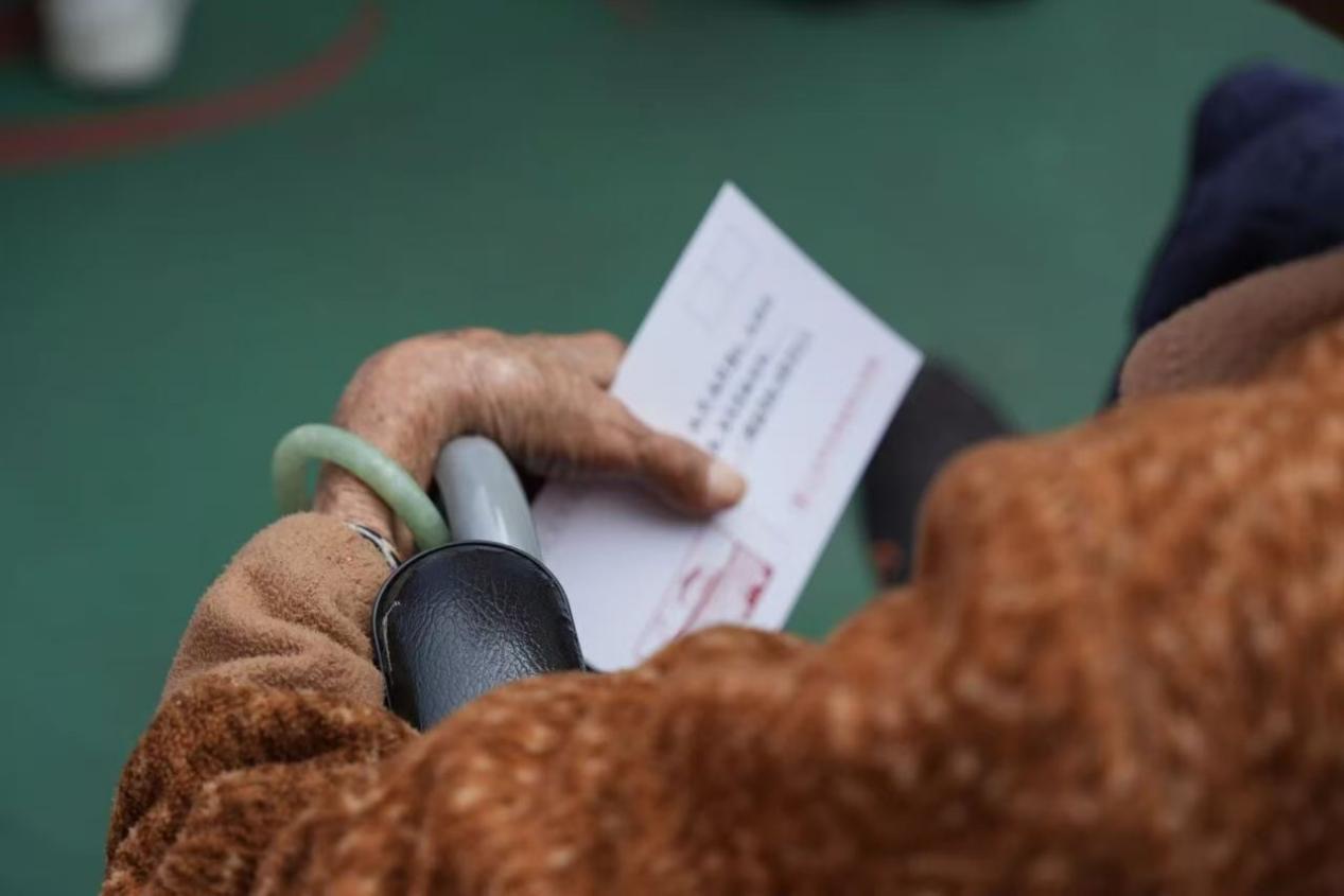 義診服務(wù)結(jié)束后,志愿者們將親手制作的賀卡送到每一位老人手中。一張張色彩鮮艷、充滿童趣的賀卡上,寫滿了真摯的祝福語,有的祝愿老人身體康健、福壽綿長,有的期盼老人天天開心、笑口常開,字里行間滿是晚輩對長輩的敬愛與關(guān)懷,讓濃濃溫情在指尖傳遞。
