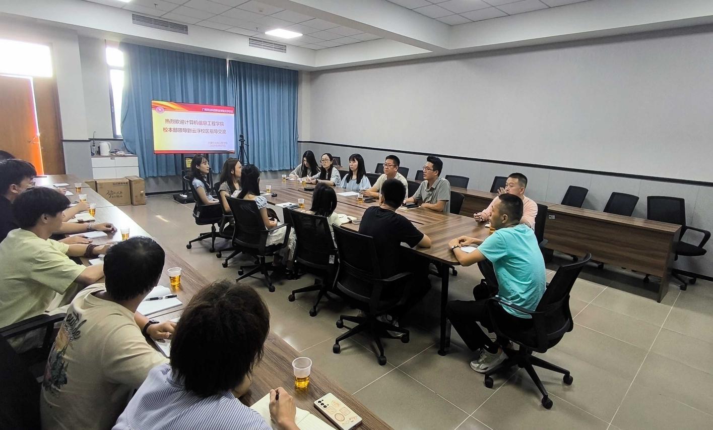 為深入貫徹落實(shí)新學(xué)年學(xué)院重點(diǎn)工作部署,進(jìn)一步加強(qiáng)兩校區(qū)之間的協(xié)同配合,2025年8月27日,計(jì)算機(jī)信息工程學(xué)院黨總支書記、副院長(zhǎng)宋海泉帶隊(duì)前往云浮校區(qū)計(jì)算機(jī)學(xué)院開展交流指導(dǎo)活動(dòng)。兩校區(qū)相關(guān)負(fù)責(zé)人及教師代表參加本次會(huì)議,圍繞新學(xué)期重點(diǎn)任務(wù)進(jìn)行深入研討和統(tǒng)一部署。