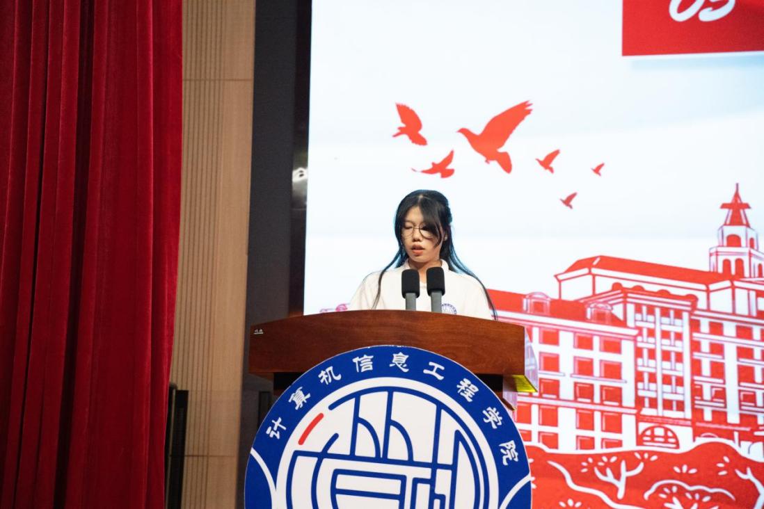 主席團(tuán)代表鄭燁曼同學(xué)對(duì)新成員的加入表示熱烈歡迎,鼓勵(lì)大家珍惜機(jī)會(huì)、勇于探索,同時(shí)感謝老成員的辛勤付出。她引用“長風(fēng)破浪會(huì)有時(shí),直掛云帆濟(jì)滄海”,號(hào)召全體成員攜手共進(jìn),共創(chuàng)計(jì)算機(jī)信息工程學(xué)院更加燦爛的明天。
