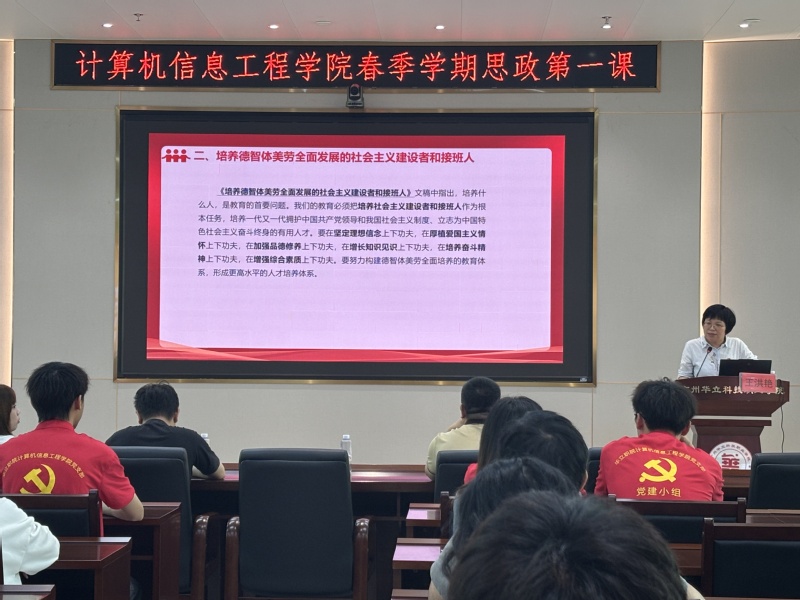 為深入學(xué)習(xí)貫徹習(xí)近平總書記關(guān)于青年工作的重要思想,引導(dǎo)廣大青年堅定理想信念、勇?lián)鷷r代使命,3月25日下午,在圖書館104會議室,學(xué)校黨委副書記、副校長王洪艷以“把青春播撒在民族復(fù)興的征程上”為主題,為計算機信息工程學(xué)院師生帶來一堂主題鮮明、內(nèi)涵豐富的思政第一課。
