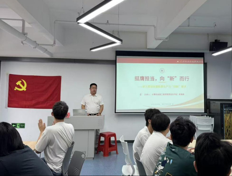 課上,宋海泉書記指出,新質生產(chǎn)力是高質量發(fā)展的核心引擎與“國之大者”,習近平總書記提出的新突破、新途徑、新局面、新成果“四新” 要求,為發(fā)展新質生產(chǎn)力提供了根本遵循與行動指南。他結合計算機專業(yè)特色,強調人工智能是新質生產(chǎn)力的核心驅動,鼓勵學子瞄準原始創(chuàng)新、攻克 “卡脖子” 技術,推動創(chuàng)新鏈、產(chǎn)業(yè)鏈、資金鏈、人才鏈深度融合,主動服務現(xiàn)代化產(chǎn)業(yè)體系建設,以制度創(chuàng)新與科技向善護航技術發(fā)展。