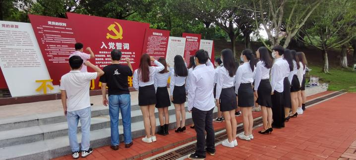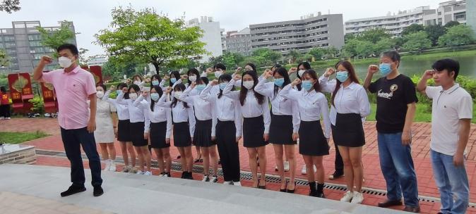 為了牢固樹立黨員的黨性意識,培養(yǎng)優(yōu)秀黨員,為黨組織輸入新鮮血液。2021年6月24日,國貿(mào)學(xué)院黨總支召開新黨員佩戴黨徽和入黨宣誓儀式。國貿(mào)學(xué)院黨總支書記隗波揚老師、黨總支副書記劉偉鑫老師、黨總支紀(jì)檢委員陳曉薇老師以及新發(fā)展黨員參加了此次儀式。