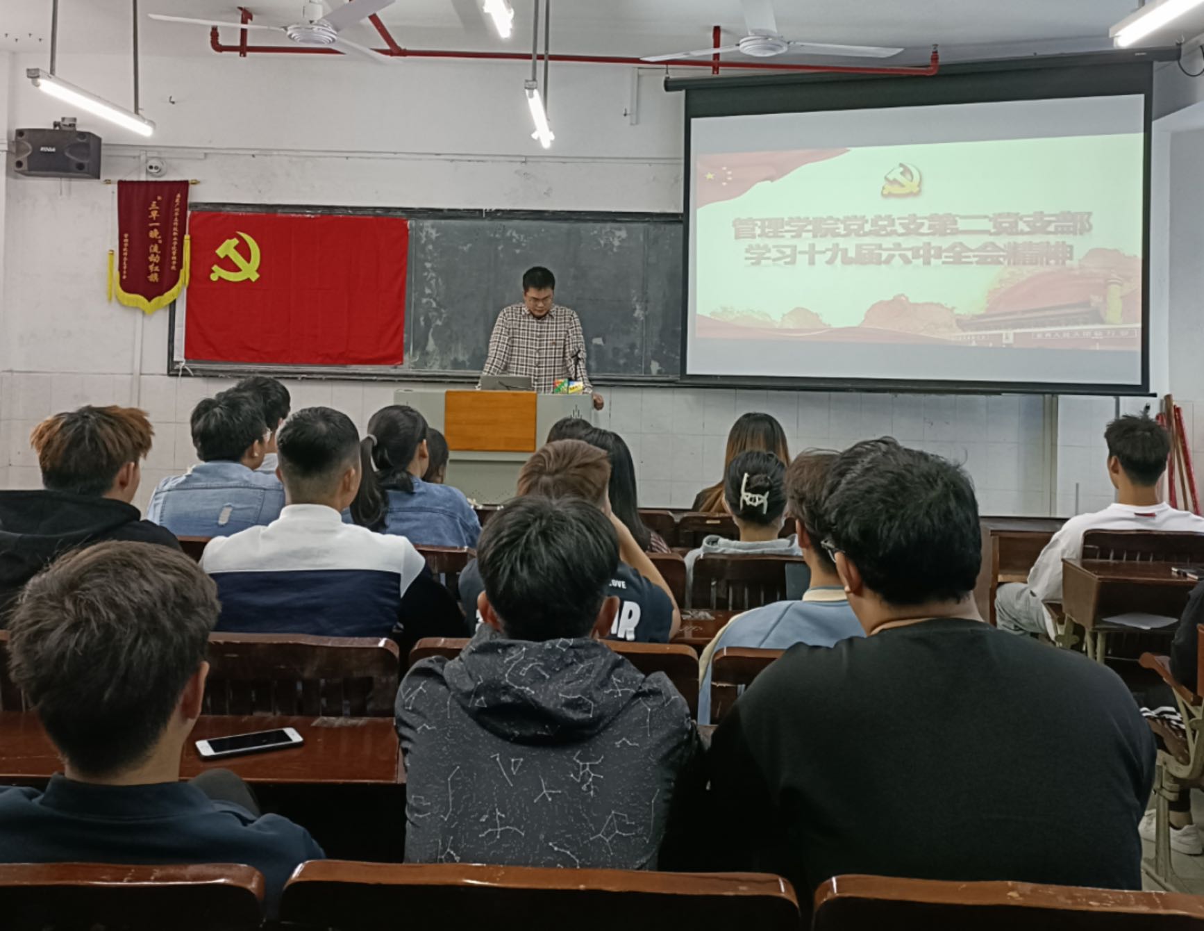 為讓同學(xué)們更深入了解關(guān)于黨的百年奮斗重大成就和黨的歷史經(jīng)驗,管理學(xué)院黨總支第二黨支部于2021年11月16日在西一召開學(xué)習(xí)十九屆六中全會精神。出席會議的有管理學(xué)院黨支部副書記兼第二黨支部書記唐濤同志、管理學(xué)院第二黨支部紀(jì)檢委員戴雙雅同志,以及20級入黨積極分子轉(zhuǎn)發(fā)展對象的同學(xué)。