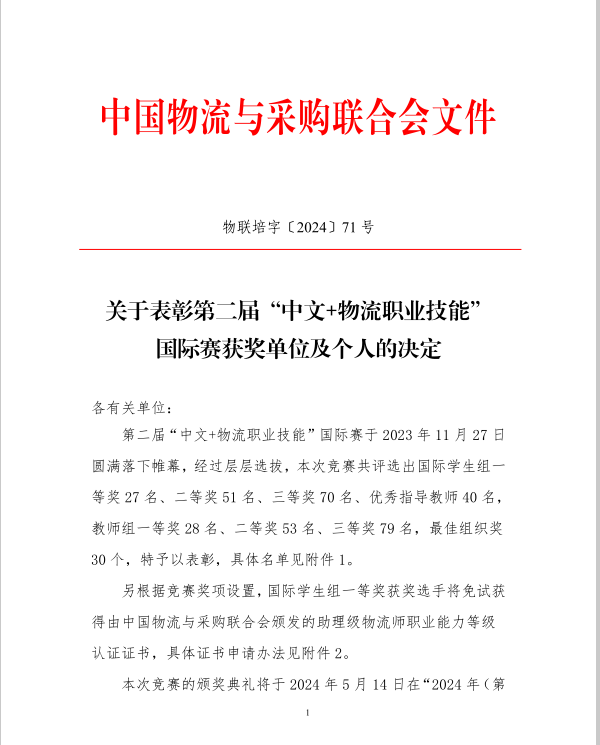 近日,第二屆“中文+物流職業(yè)技能” 傳來喜訊,我院余曼老師榮獲第二屆“中文+物流職業(yè)技能”國際賽教師組三等獎。