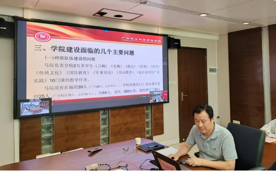 會(huì)上,馬克思主義學(xué)院院長(zhǎng)廖良初教授匯報(bào)了建設(shè)工作進(jìn)展、取得的成效以及存在的問(wèn)題。他提出,學(xué)校高度重視馬克思主義學(xué)院的建設(shè)與發(fā)展,嚴(yán)格落實(shí)上級(jí)要求,將思政課教育教學(xué)置于學(xué)校立德樹(shù)人的突出位置;精心指導(dǎo)馬克思主義學(xué)院工作,通過(guò)配齊配強(qiáng)干部教師、書(shū)記校長(zhǎng)帶頭講思政第一課、單列思政課教育職稱評(píng)審、支持教科研項(xiàng)目申報(bào)、優(yōu)化辦公環(huán)境等系列舉措,抓好頂層設(shè)計(jì)和統(tǒng)籌安排;全力支持馬克思主義學(xué)院各項(xiàng)工作。黨辦、校辦、人事處、教務(wù)處、科研處、總務(wù)處等職能部門(mén)勇于擔(dān)當(dāng)、善于協(xié)作,常態(tài)化開(kāi)展對(duì)馬克思主義學(xué)院的調(diào)研、幫扶,為馬克思主義學(xué)院的建設(shè)和發(fā)展提供了有力保障。馬克思主義學(xué)院則根據(jù)學(xué)校部署與要求,狠抓內(nèi)涵建設(shè)、特色創(chuàng)建及品牌打造,以“打鐵還需自身硬”的決心和“抓鐵留痕”的干勁,緊盯高標(biāo)準(zhǔn)建設(shè)、高質(zhì)量發(fā)展的目標(biāo)不動(dòng)搖、不松懈,不斷推進(jìn)自身工作取得新成效、邁上新臺(tái)階。