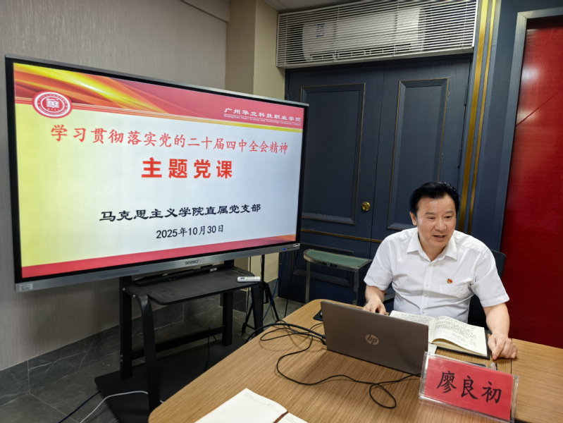 2025年10月30日,馬克思主義學(xué)院直屬黨支部在G1-314會議室開展學(xué)習(xí)貫徹黨的二十屆四中全會精神主題黨課活動。主題黨課由黨支部書記廖良初同志主持,楊玉瑞博士主講,學(xué)院全體黨員教師參加。