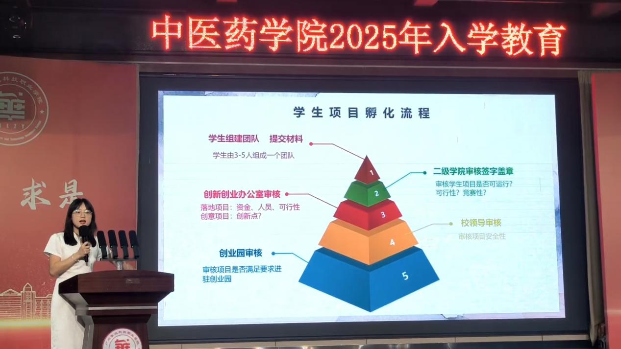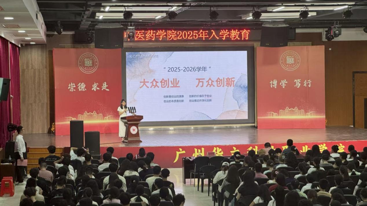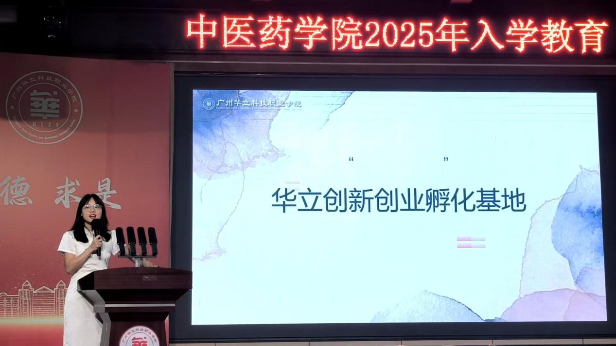 2025年9月5日,廣州華立科技職業(yè)學院中醫(yī)藥學院2025級新生入學教育之“創(chuàng)新創(chuàng)業(yè)第一課”在圖書館八樓學術報告廳成功舉行。主講人為中醫(yī)藥學院創(chuàng)新創(chuàng)業(yè)指導老師劉嘉楣,參與本次活動的人員有中醫(yī)藥學院副院長、直屬黨支部書記曾祥彪和中醫(yī)藥學院直屬黨支部專職副書記、學生管理辦公室副主任陳輝,以及中醫(yī)藥學院全體新生。