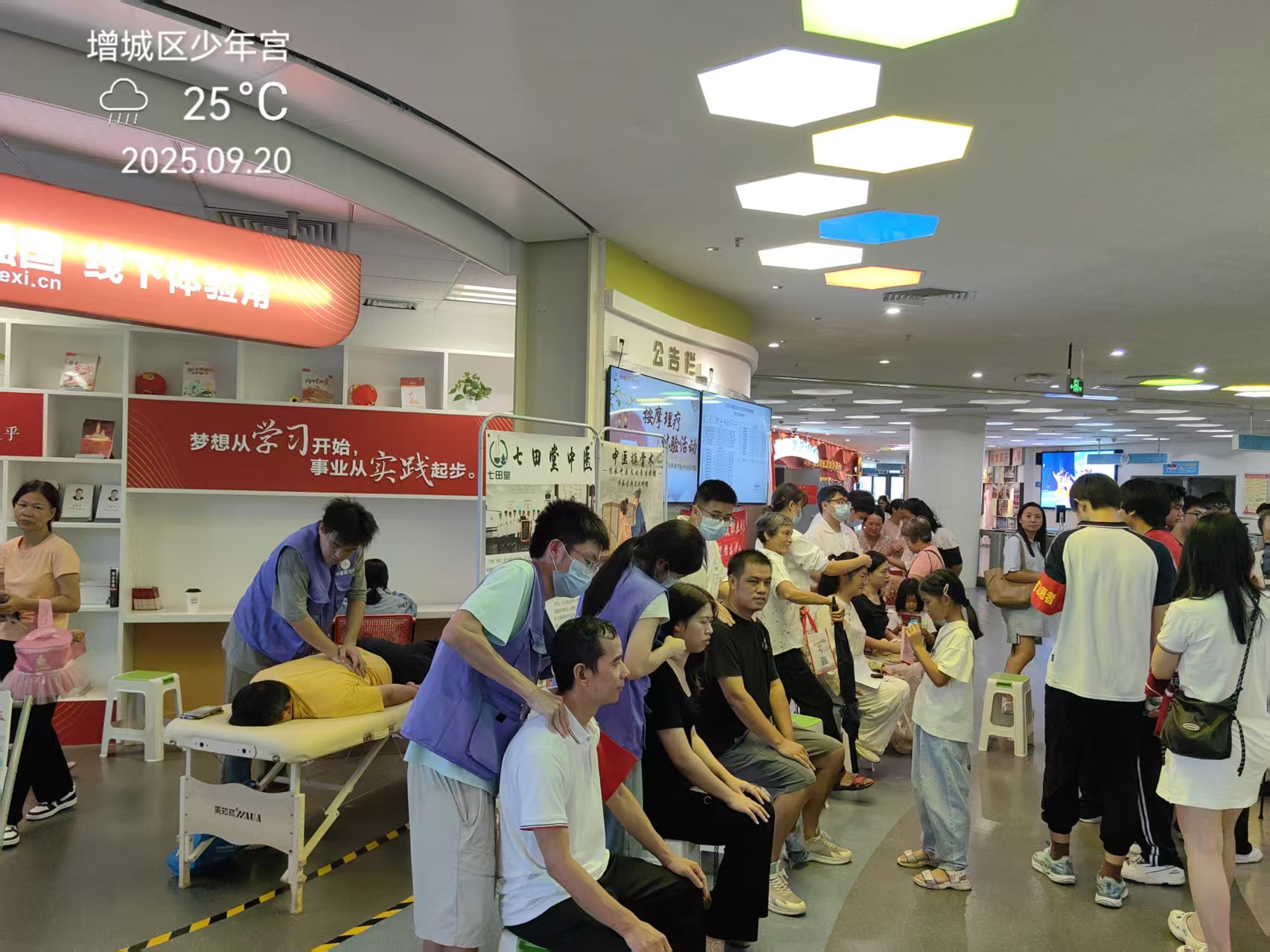 9月20日上午,廣州華立科技職業(yè)學(xué)院中醫(yī)藥學(xué)院在增城區(qū)少年宮成功舉辦“華立杏林暖增城,愛心推拿伴等候”公益服務(wù)活動(dòng),以實(shí)際行動(dòng)服務(wù)社區(qū)、回饋社會(huì),為學(xué)生搭建專業(yè)實(shí)踐平臺(tái)。