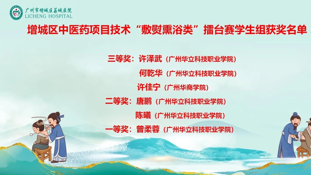 9月17日,由增城區(qū)衛(wèi)生健康局、增城區(qū)總工會(huì)主辦,增城區(qū)中醫(yī)藥學(xué)會(huì)、增城區(qū)中醫(yī)醫(yī)院與增城區(qū)荔城醫(yī)院聯(lián)合承辦的2025年增城區(qū)中醫(yī)藥項(xiàng)目技術(shù)擂臺(tái)賽“敷熨熏浴類”競(jìng)賽,在荔城醫(yī)院圓滿落下帷幕。來(lái)自全區(qū)的中醫(yī)藥從業(yè)者、院校學(xué)生、鄉(xiāng)村醫(yī)生等多群體選手同臺(tái)競(jìng)技,共同展現(xiàn)傳統(tǒng)中醫(yī)外治療法的獨(dú)特魅力。