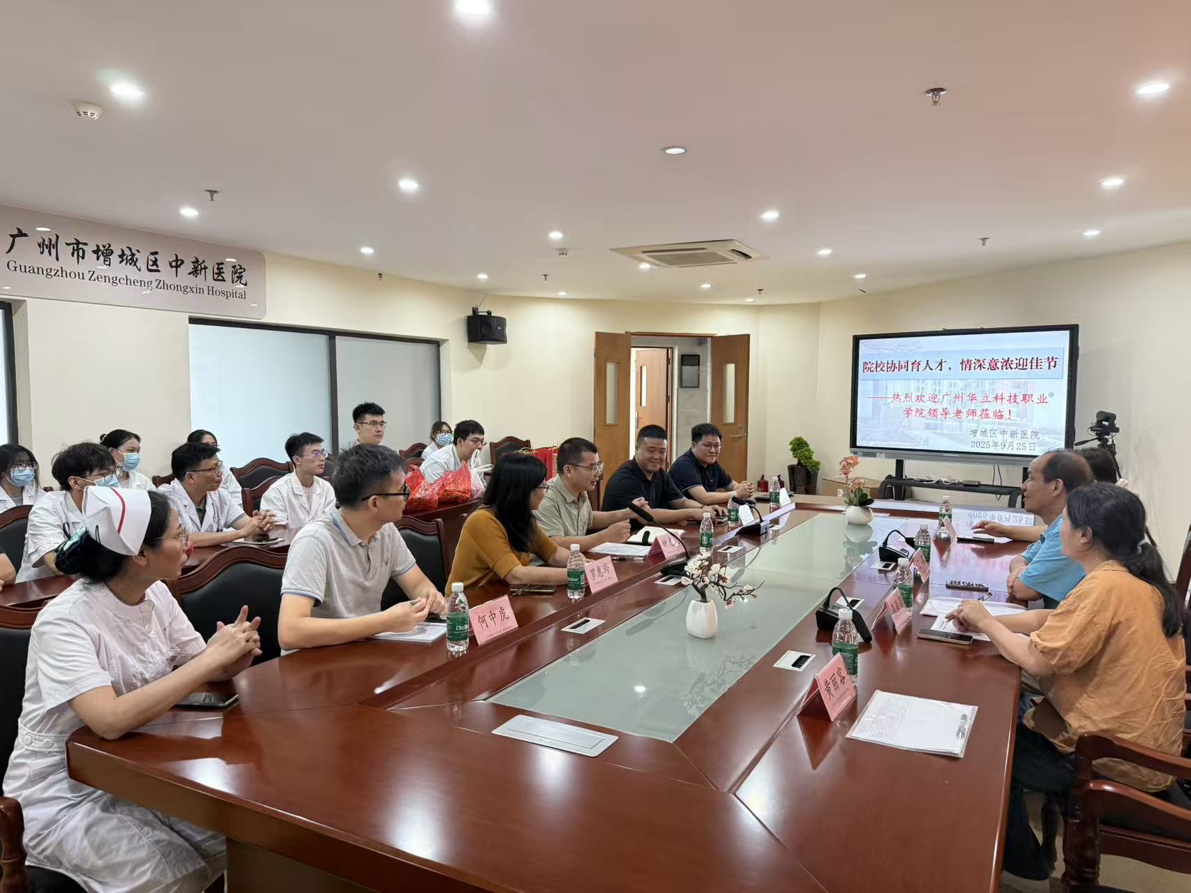 桂子月中落,天香云外飄。2025年9月26日上午,中醫(yī)藥學(xué)院王暉院長率領(lǐng)教務(wù)處老師及指導(dǎo)老師組成的慰問團(tuán),來到增城區(qū)中新醫(yī)院,親切看望了在此實(shí)習(xí)的學(xué)生,并舉行了一場內(nèi)容豐富、氣氛熱烈的座談交流會。