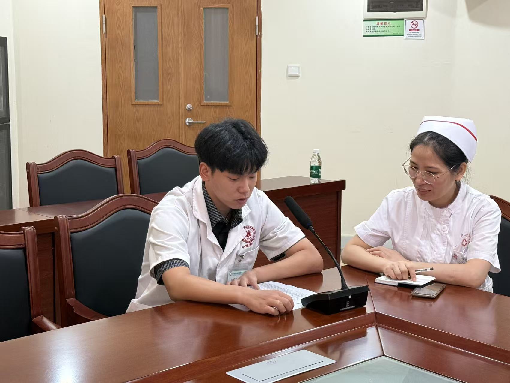 在實(shí)習(xí)生分享環(huán)節(jié),實(shí)習(xí)生組長作為代表發(fā)言,暢談實(shí)習(xí)收獲。他們結(jié)合在內(nèi)科、外科、針灸科、藥房等不同科室的輪轉(zhuǎn)經(jīng)歷,分享了如何將所學(xué)知識與現(xiàn)代醫(yī)學(xué)診療技術(shù)相融合的實(shí)踐案例。同學(xué)們對醫(yī)院提供的豐富臨床資源和帶教老師的傾囊相授表示感謝,同時也對實(shí)習(xí)輪轉(zhuǎn)安排、技能操作訓(xùn)練頻率等提出了建設(shè)性意見,希望能在有限的實(shí)習(xí)期內(nèi)接觸到更多樣的病種。