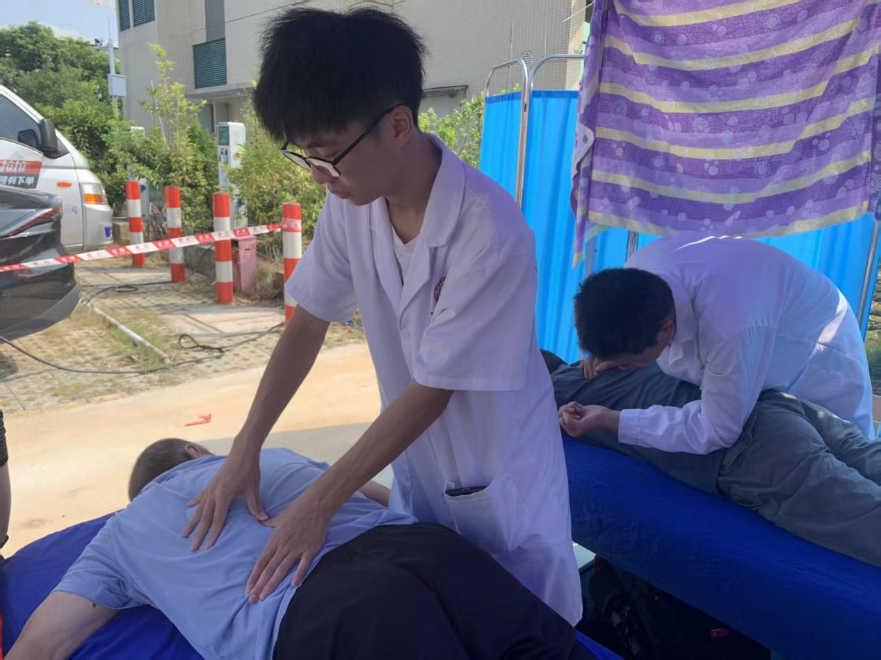 活動現(xiàn)場,醫(yī)療團(tuán)隊以飽滿的熱情與專業(yè)的態(tài)度投入服務(wù),迅速搭建起健康咨詢與理療服務(wù)專區(qū),吸引了眾多鄉(xiāng)鎮(zhèn)居民前來參與。潘菽弢博士憑借深厚的中醫(yī)理論功底與豐富的臨床經(jīng)驗,為居民們提供一對一健康咨詢服務(wù)。與此同時,我院中醫(yī)藥應(yīng)用研究所講師團(tuán)與黨建小組的志愿者同學(xué)們充分發(fā)揮專業(yè)所長,為居民提供專業(yè)的推拿理療服務(wù)。面對患有頸肩腰腿痛的居民,志愿者們運用嫻熟的推拿手法,精準(zhǔn)緩解肌肉緊張與疼痛,在服務(wù)過程中還向居民講解日常護(hù)腰、護(hù)頸的小技巧,幫助居民掌握自我保健方法。