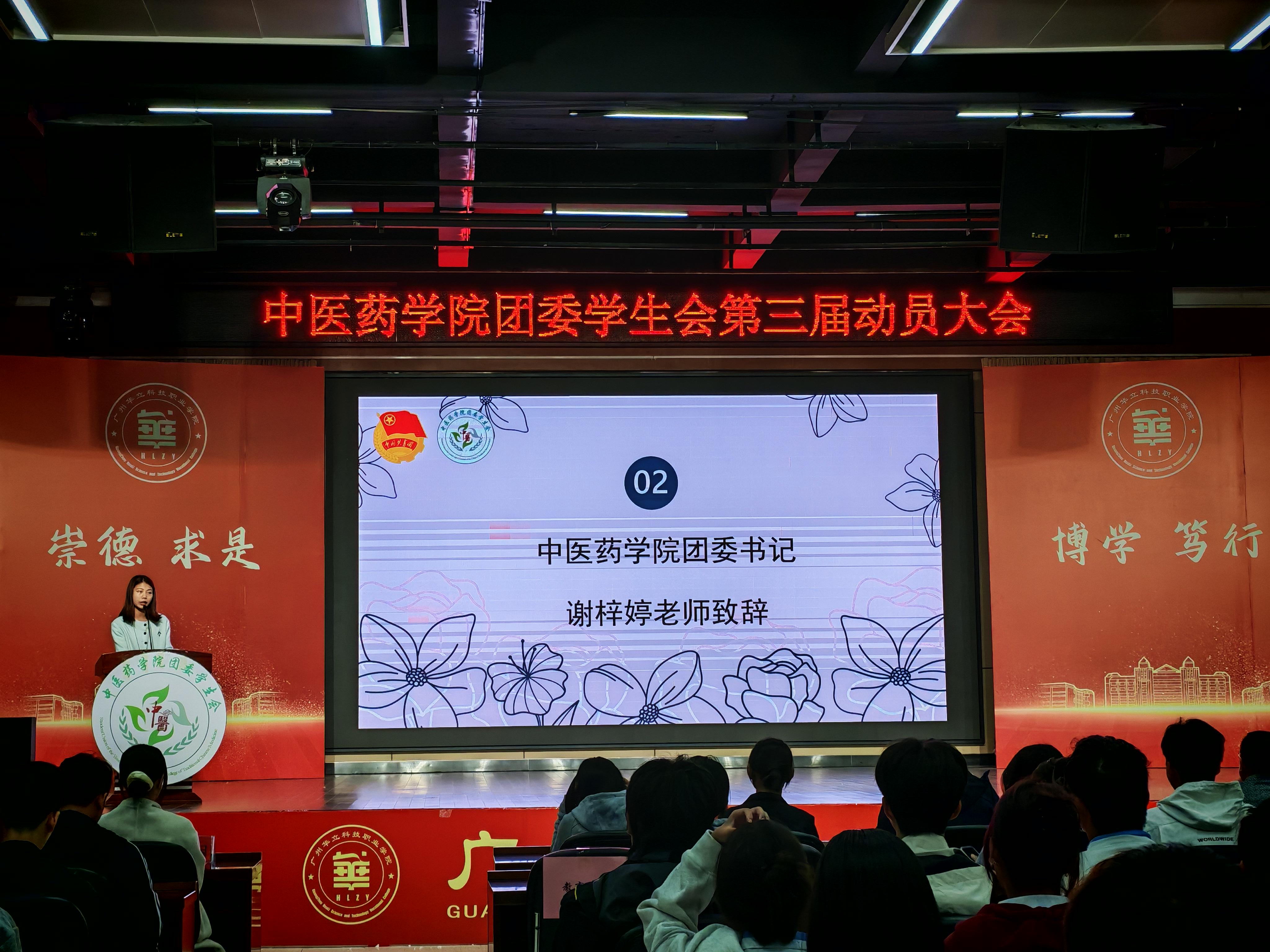 主持人以清晰而富有感染力的聲音,逐一介紹了蒞臨本次大會的嘉賓。出席本次大會的有:中醫(yī)藥學院直屬黨支部書記、副院長曾祥彪老師、中醫(yī)藥學院直屬黨支部組織委員鄭潔儀老師、中醫(yī)藥學院直屬黨支部宣傳委員曾玉梅老師、中醫(yī)藥學院團委書記謝梓婷老師、中醫(yī)藥學院易班指導老師王雯雯老師,以及中醫(yī)藥學院全體輔導員老師們,強調了學院領導、老師對學生組織建設與發(fā)展的高度重視與支持。