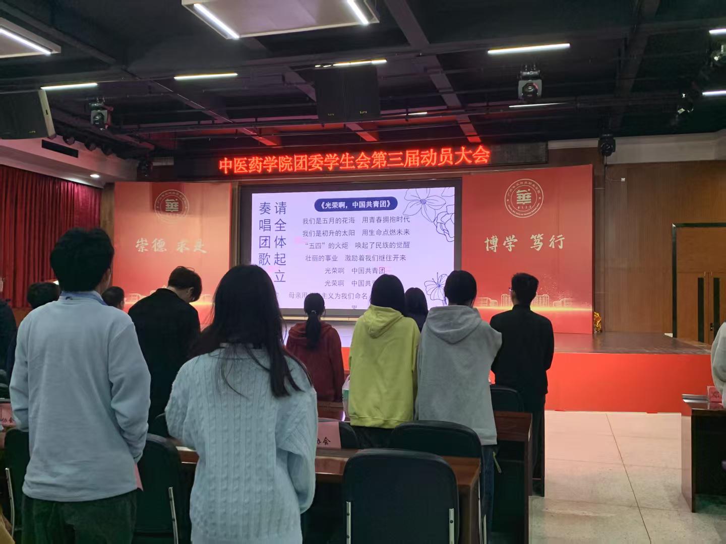 全體成員起立,奏唱團歌,激昂的旋律拉開了大會的序幕,彰顯了共青團組織的嚴肅性與凝聚力。