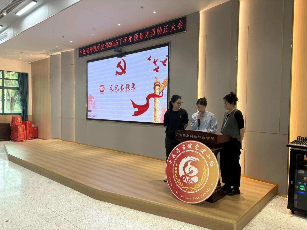 2025年12月22日下午,學(xué)院黨支部隆重召開(kāi)2025年下半年預(yù)備黨員接收暨轉(zhuǎn)正大會(huì)。大會(huì)在莊嚴(yán)的國(guó)歌聲中拉開(kāi)帷幕,支部全體黨員黨員、發(fā)展對(duì)象及相關(guān)人員參會(huì)。本次大會(huì)嚴(yán)格遵循《中國(guó)共產(chǎn)黨發(fā)展黨員工作細(xì)則》,圍繞接收黃小滿等9名發(fā)展對(duì)象為預(yù)備黨員、討論李曉艷同志按期轉(zhuǎn)正兩項(xiàng)核心議題展開(kāi)。支部應(yīng)到到正式黨員23名,實(shí)到黨員20名,符合會(huì)議召開(kāi)規(guī)定,確保會(huì)議合法有效。會(huì)前,與會(huì)成員集體學(xué)習(xí)了“第一議題”內(nèi)容,強(qiáng)化理論武裝,為后續(xù)議程奠定堅(jiān)實(shí)的思想基礎(chǔ)。
